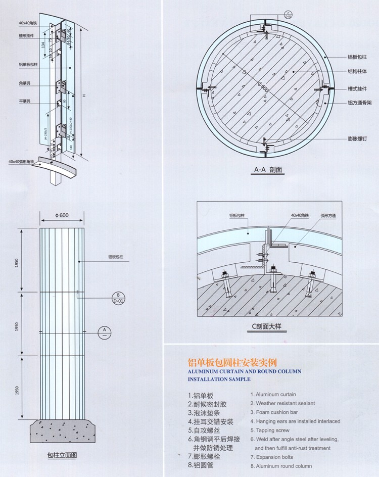 圓形無(wú)縫包柱鋁單板特點(diǎn):
